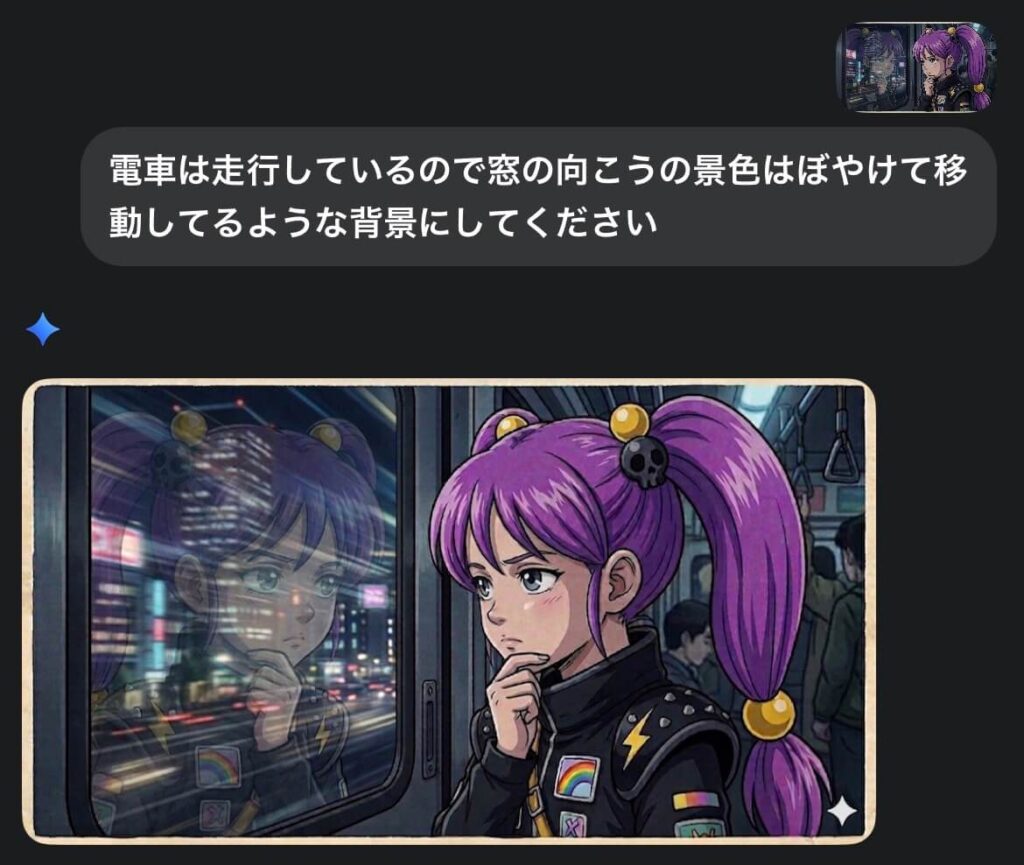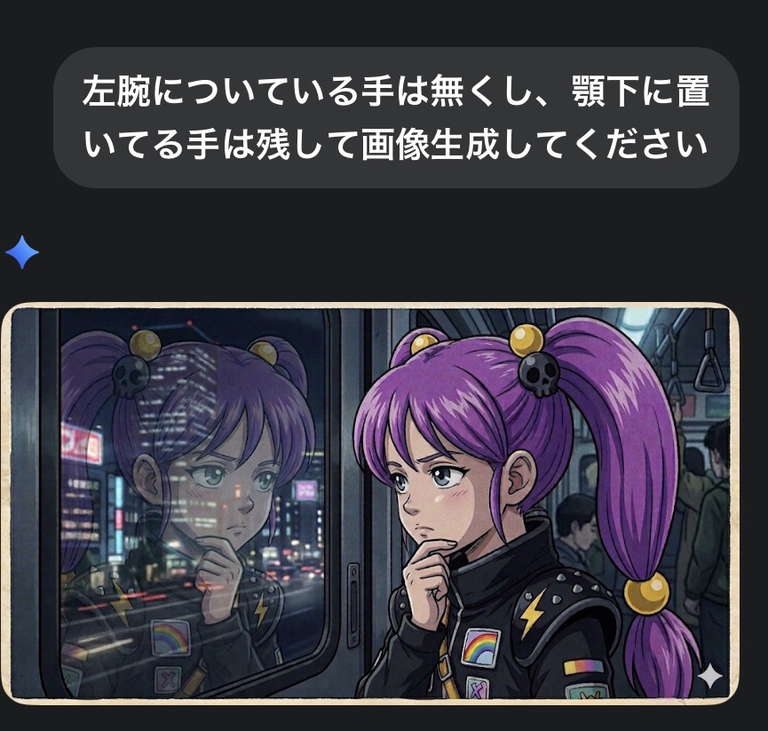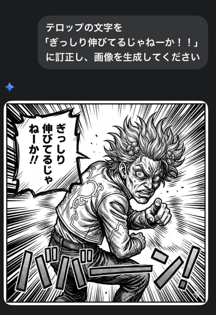 なんかキャラが吹き出しに負けてる感じするので次のようなプロンプトを入れてみます